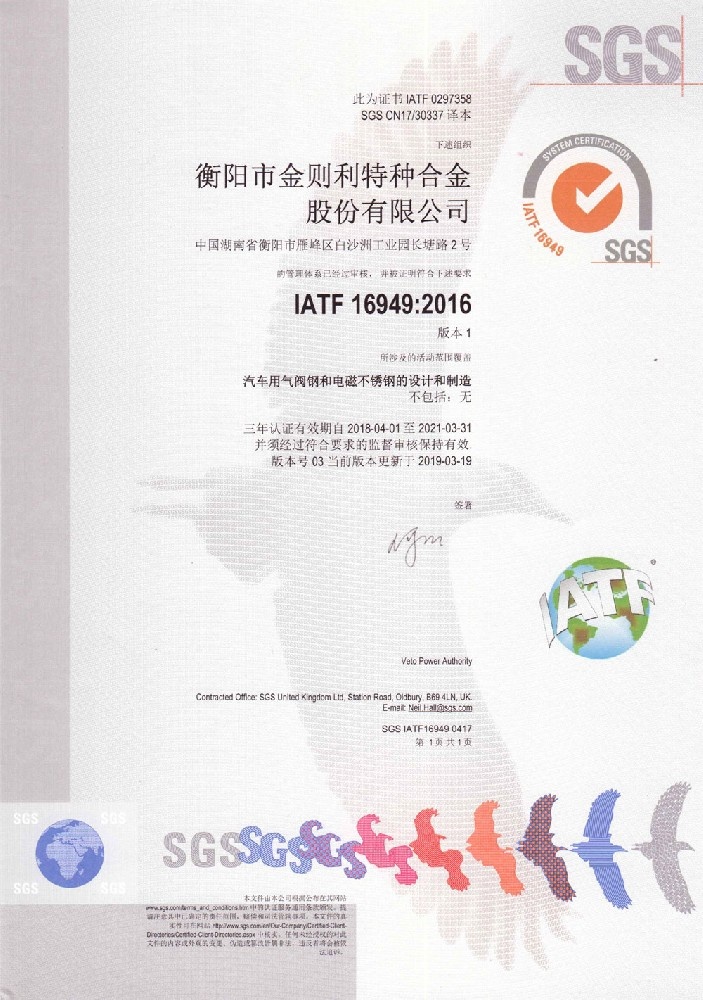 衡陽市金則利特種合金股份有限公司成立于一九九九年十二月,注冊資本人民幣兩千兩百萬元。注冊地址:衡陽市雁峰區白沙洲工業園長塘路2號。公司主營耐蝕軟磁合金,為湖南省高新技術企業。公司自成立以來,即致力于耐蝕軟磁合金的研發。 研制出的JL-31(00Cr13si2Pb)、JL-31B(00Cr13si2)、JL-31BS(00Cr13Si2S)、JL-37B(0Cr17Si2)、JL-37(0Cr17···